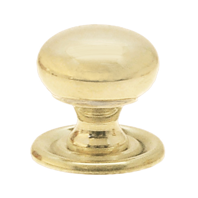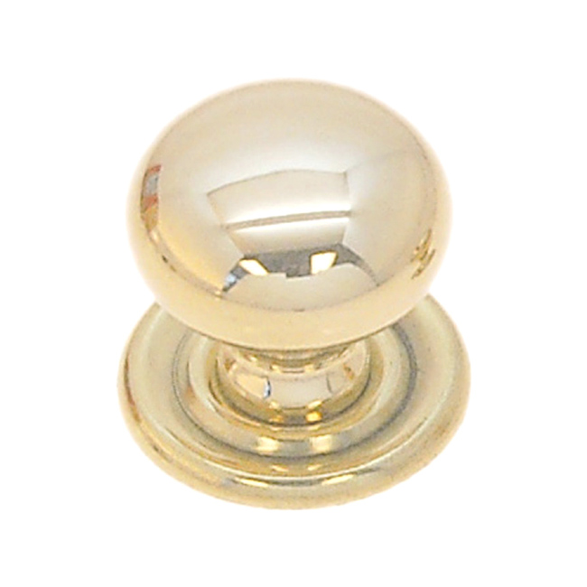 1232-PB Small Victorian style knob with matching back plate Finish/Color: Polished BrassMaterial: Solid BrassDimensions: 3/4" dia.Size Options: Smallest | Small | Medium| LargeTimeline: Late 19th, Early 20th Century SKU: 1232-PB Category: Brass Knobs Tag: Polished Brass Description Description Solid brass knob with a matching back plate. Available in 4 sizes and furnished with a screw and a hanger bolt. 3/4″ diam. , 3/4″ projection