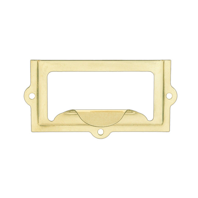 1402-PB Stamped brass label or cardholder Pull Finish/Color: Polished BrassMaterial: Solid BrassDimensions: 2-3/8" X 1-1/4"Finish Options: AB | PB | PN | BN | OB SKU: 1402-PB Categories: File Cabinet, Miscellaneous Tag: Polished Brass Description Description Card holder with pull. Stamped brass. Installed with screws for added strength. Comes in 5 finishes. Frame: 2-3/8″ X 1-1/4″ For card size: 2″ X 1″