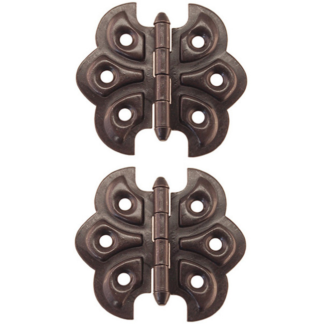1560-OB Ornamental, embossed “butterfly” hinges Finish/Color: Oil rubbed BronzeMaterial: steelDimensions: 2-3/8" X 2-1/4"Finish Options: AB | AC | OB | PB | PNTimeline: Early 20th Century SKU: 1560-OB-1731 Categories: Hinges, Steel Tag: Oil rubbed Bronze Description Description Embossed ornamental hinges have been very common for furniture and cabinets since the late 19th century onward. Made of steel. Full surface, flush mount hinges. 2-3/8″ X 2-1/4″ Sold in pairs.