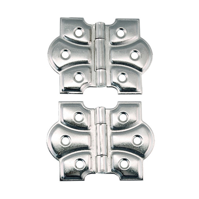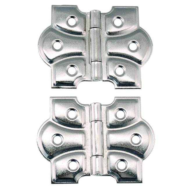 1561-PN Ornamental, embossed hinges with removable pin Finish/Color: Polished NickelMaterial: steelDimensions: 2-3/8" X 1-3/4"Finish Options: AB | AC | OB | PB | PNTimeline: Early 20th CenturyFeatures: Removable pin SKU: 1561-PN-1738 Categories: Hinges, Steel Tag: Polished Nickel Description Description Embossed ornamental hinges have been very common for furniture and cabinets since the late 19th century onward. Made of steel. With removable pins. Full surface, flush mount hinges. 2-3/8″ X 1-3/4″ Sold in pairs.