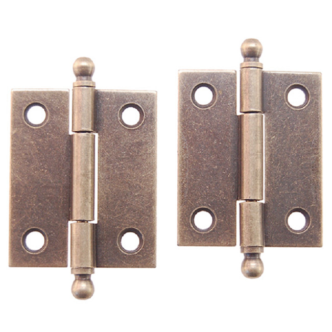 1822-AB Steel cabinet hinges with removable pins – medium Finish/Color: Antique BrassMaterial: SteelDimensions: 1-5/8" X 1-15/16"Finish Options: AB | PB | PN | OB | ACTimeline: Early 20th CenturyFeatures: Utility hinges with removable pins SKU: 1822-AB-1192 Categories: Hinges, Steel Tag: Antique Brass Description Description Butt hinges with ball tips. Steel. Removable pin. Simple and well-made, these are faithful replicas of the old style hinges. Come in 3 sizes and 6 finishes. Sold in pairs. 1-5/8″ X 1-15/16″