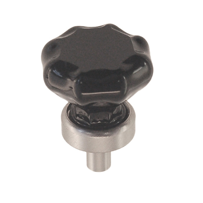 Octagonal glass knob with brass base. Available in 3 sizes: 1″ dia. , 1-1/4″ dia. , 1-1/2″ dia. and in 6 colors: clear, amethyst, translucent white, Depression green, amber and black. Each knob is available in 4 base finishes: Polished Brass, Polished Nickel, Brushed Nickel, Oil rubbed Bronze. Please specify base finish when ordering. This is the small size.