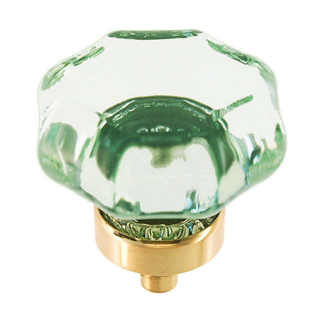 Octagonal glass knob with polished brass base – medium