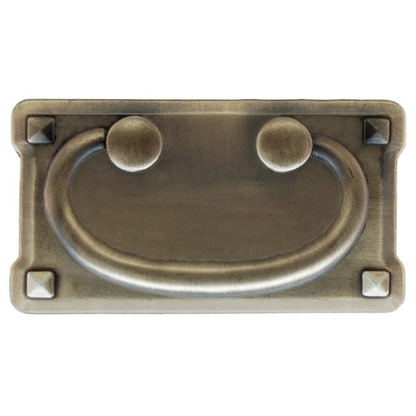 6018 Mission style drawer pull – large Finish/Color: Antique BrassMaterial: Zinc AlloyDimensions: 3-3/4" x 2" , 3" CCFinish Options: AB | PW | BK | DBTimeline: Mission, Arts & Crafts SKU: 6018-2293 Categories: Mission, Pulls, Zinc Alloy Description Description Drawer pull for Mission/Arts & Crafts furniture. Zinc Alloy die cast. 3-3/4″ X 2″ 3″ CC