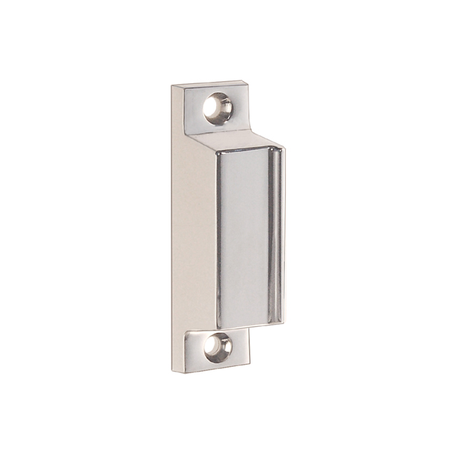 8502-PN Strike Box for Screen Door Latch Finish/Color: Polished NickelMaterial: Solid BrassDimensions: 2-1/4" longFinish Options: AB | BN | OB | PB | PN | PLTimeline: Early 20th Century SKU: 8502-PN Categories: Door Hardware, Door Hardware, Door Locks and Latches, Screen Door Hardware, Screen Door Hardware Tag: Polished Nickel Description Description Optional box strike for the screen door latch 8801-PN. Sold separately. 2-1/4″ long, 5/8″ wide, 5/8″ high