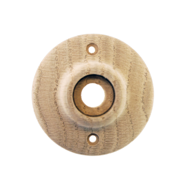 8677 Oak door rose Finish/Color: Red OakMaterial: WoodDimensions: 2-1/8" diam.Timeline: Late 19th Century, Early 20th CenturyFeatures: Unfinished red oak SKU: 8677-3 Categories: Door Roses, Door Roses, Wood Description Description Door rose made of wood. Unfinished red oak ready to take any wood finish. 2-1/8″ diameter. 3/4″ hub diameter.