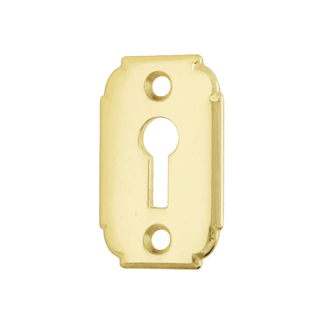 8726-PB Keyhole plate Finish/Color: Polished BrassMaterial: Forged BrassDimensions: 1-1/16" x 1-3/4"Finish Options: PB | PL | PN | BN | OB SKU: 8726-PB Categories: Door Hardware, Door Hardware, Locks and Keys Tag: Polished Brass Description Description Keyhole plate for house doors. Forged brass. 1-1/16″ x 1-3/4″