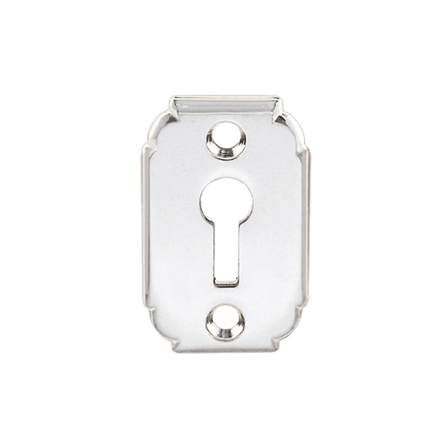 8726-PN Keyhole plate Finish/Color: Polished NickelMaterial: Forged BrassDimensions: 1-1/16" x 1-3/4"Finish Options: PB | PL | PN | BN | OB SKU: 8726-PN Categories: Door Hardware, Door Hardware, Locks and Keys Tag: Polished Nickel Description Description Keyhole plate for house doors. Forged brass. 1-1/16″ x 1-3/4″