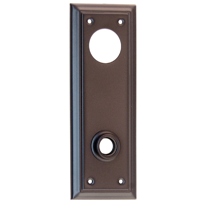 8733-OB Wrought brass trim plate (escutcheon) for doors Finish/Color: Oil Rubbed BronzeMaterial: Solid BrassDimensions: 2-1/2" X 6-7/8" platesFinish Options: BN | PB | PN | OB | PLTimeline: Late 19th Century, Early 20th Century SKU: 8733-OB-408 Category: Door Plates Description Description Solid brass rectangular door trim plate for doorknob and keyway cylinder . Wrought brass. In 5 Finishes: PB, PL, PN, BN, OB. Keyway cylinder sold separately. 2-1/2″ wide , 6-7/8″ high 3-7/16″ center to center spacing