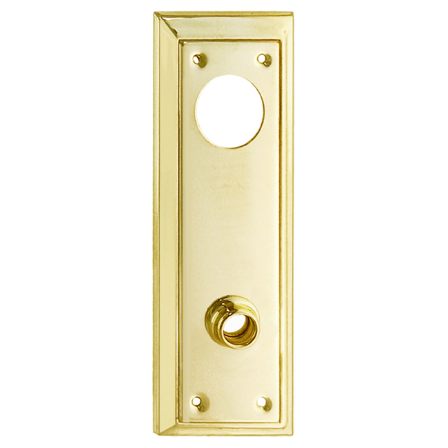 8733-PB Wrought brass trim plate (escutcheon) for doors Finish/Color: Polished BrassMaterial: Solid BrassDimensions: 2-1/2" X 6-7/8" platesFinish Options: BN | PB | PN | OB | PLTimeline: Late 19th Century, Early 20th Century SKU: 8733-PB-409 Category: Door Plates Description Description Solid brass rectangular door trim plate for doorknob and keyway cylinder . Wrought brass. In 5 Finishes: PB, PL, PN, BN, OB. Keyway cylinder sold separately. 2-1/2″ wide , 6-7/8″ high 3-7/16″ center to center spacing