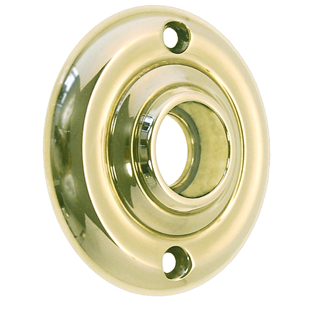 8741-PL Doorknob rose Finish/Color: Lacquered Pol. BrassMaterial: Solid brassDimensions: 2-1/4" diameterFinish Options: BN | PB | PN | OB | PLTimeline: Late 19th century onward SKU: 8741-PL-535 Category: Door Roses Description Description Doorknob rose. Forged brass. With indented lines pattern. Comes in 5 finishes. 2-1/4″ diameter.