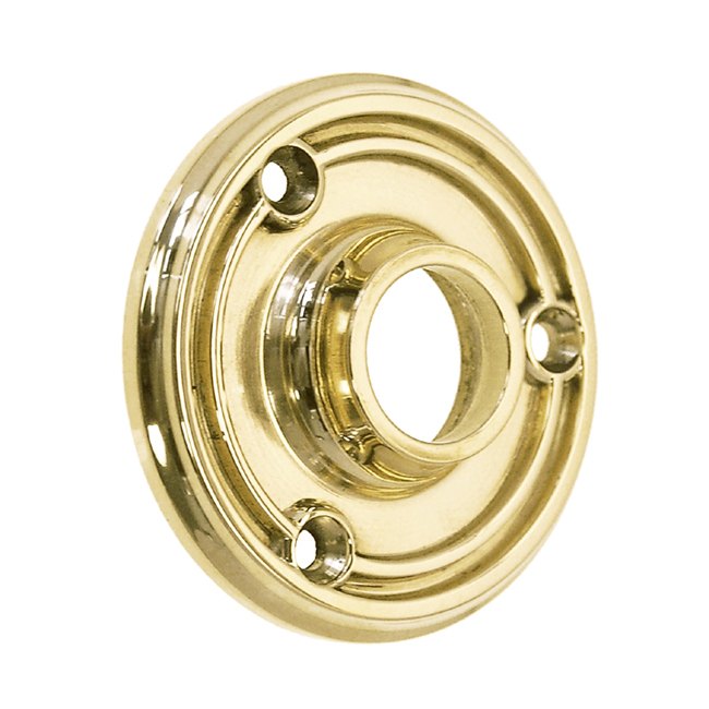 8742-PL Doorknob rose Finish/Color: Lacquered Pol. BrassMaterial: Solid brassDimensions: 2-1/4" diameterFinish Options: BN | PB | PN | OB | PLTimeline: Late 19th century onward SKU: 8742-PL-540 Category: Door Roses Description Description Doorknob rose. Forged brass. With embossed lines pattern. Comes in 5 finishes. 2-1/4″ diameter.