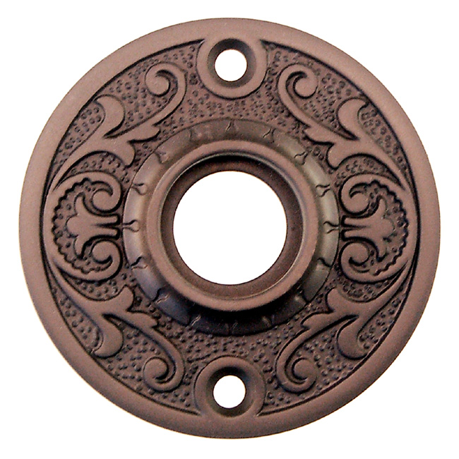 8743-OB Doorknob rose Finish/Color: Oil Rubbed BronzeMaterial: Solid brassDimensions: 2-3/16" diameterFinish Options: BN | PB | PN | OB | PLTimeline: Late 19th century onward SKU: 8743-OB-543 Categories: Door Roses, Door Roses Description Description Doorknob rose. Forged brass. With floral pattern. Comes in 5 finishes. 2-3/16″ diameter , 3/4″ hub dia. , 1-11/16″ center to center