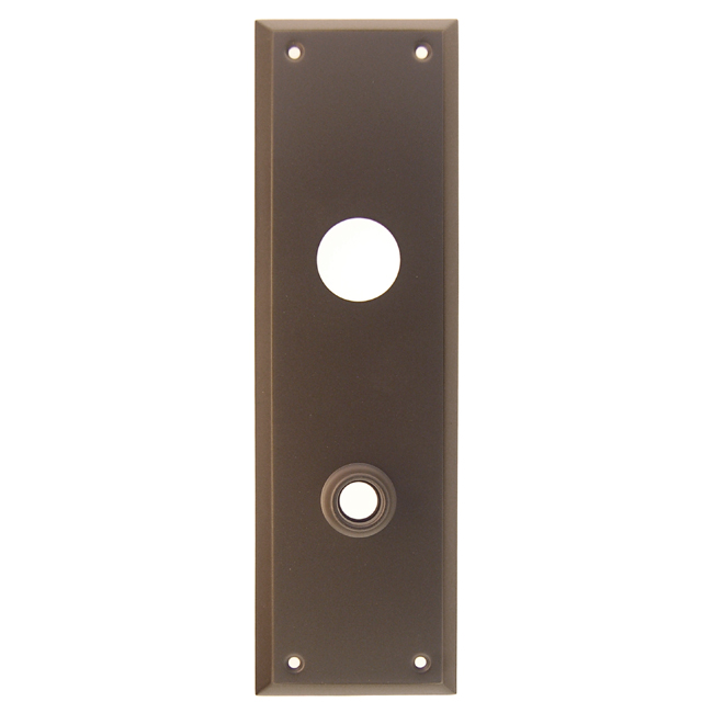 8761-OB Door trim plate Finish/Color: Oil Rubbed BronzeMaterial: Solid brassDimensions: 3" X 10"Finish Options: BN | PB | PL | PN | OBTimeline: Late 19th century onward SKU: 8761-OB-423 Category: Door Plates Tag: Oil rubbed Bronze Description Description Large rectangular plain door trim plate for doorknob and keyway cylinder functions. Wrought solid brass. Available in 5 finishes. (Cylinder sold separately.) Plate: 3″ wide X 10″ high 3-7/16″ (3.438″) spacing (hub to cylinder)
