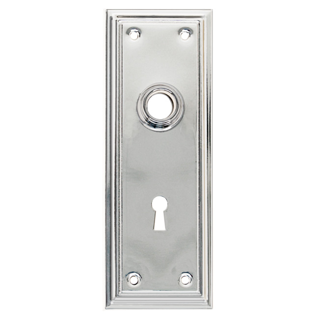 8764-K-PN Wrought brass trim plate (escutcheon) with keyhole for doors Finish/Color: Polished NickelMaterial: Solid BrassDimensions: 2-1/2" X 6-7/8"Finish Options: BN | PB | PL | PN | OBTimeline: Late 19th Century, Early 20th Century SKU: 8764-K-PN-456 Category: Door Plates Tag: Polished Nickel Description Description Elegant door trim (escutcheon) plate. Wrought brass. In 5 Finishes: PB, PL, PN, BN and OB. 6-7/8″ high , 2-1/2″ wide 2-1/4″ spacing (hub to keyhole)