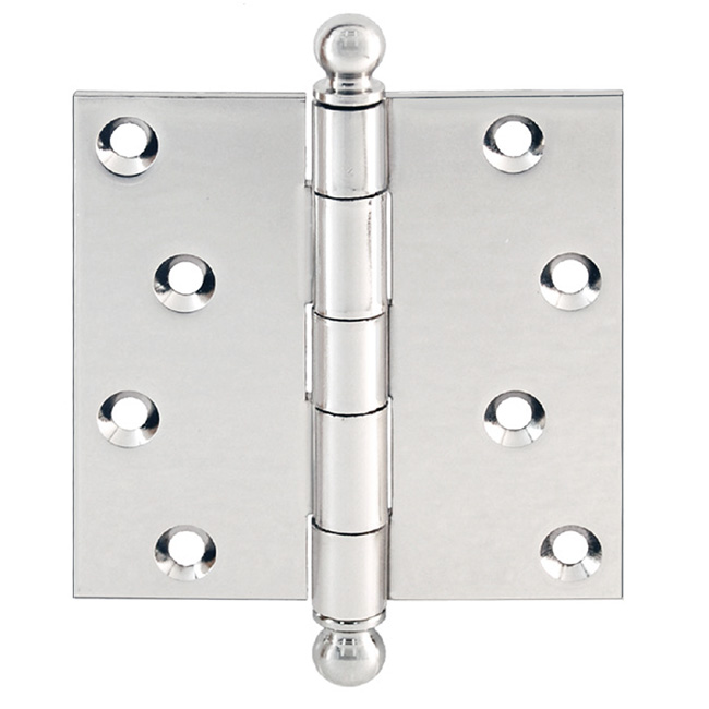 High quality door hinges with ball tips that are exact replicas of old style hinges. Removable pins with large ball tips. Stainless steel. Plated with 4 Finishes: Polished Brass (lacquered), Polished Nickel, Brushed Nickel, Oil rubbed Bronze. Highly polished steel door hinges. Swaged. 5 knuckles. The pin and the upper ball tip are made of one piece of steel and it is removable.