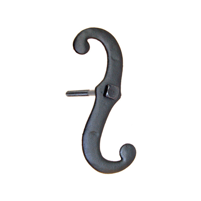 8801-BK S-scroll shutter holder (shutter dog) – smaller Finish/Color: Painted blackMaterial: IronDimensions: 6" longSize Options: SM LG SKU: 8801-BK-72 Categories: Iron, Window Hardware Tag: Painted black Description Description S-scroll shutter fastener (Shutter dog). Smaller. Cast iron, painted black. Can be used in wood or bricks. Reversible for right and left. Comes with a 4-1/2″ long lag screw. 6″ long. Lag screw 4-1/2″ long.