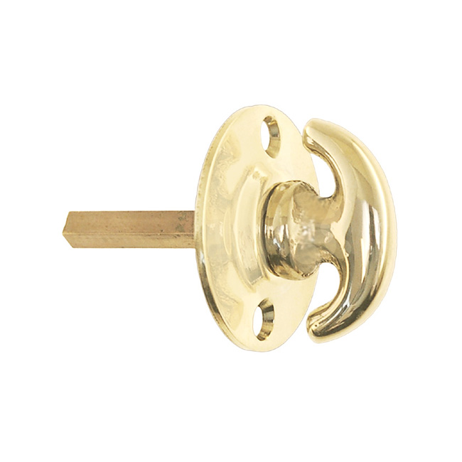 8828-PL Crescent thumb turn or turn piece for mortise locks and deadbolts Finish/Color: Lacquered Polished BrassMaterial: Solid BrassDimensions: 1-1/2 diam.Finish Options: BN | OB | PB | PN | PLTimeline: Late 19th Century, Early 20th Century SKU: 8828-PB-1 Categories: Door Hardware, Door Hardware Tag: Polished Brass Description Description Crescent thumb turn for locking doors on the inside. Stamped brass raised round plate. In 5 finishes. Old style thumb turns for mortise locks, night locks, catches etc. Round plate diam.: 1-1/2″ Spindle: 3/16″ square , 1-1/4″ long