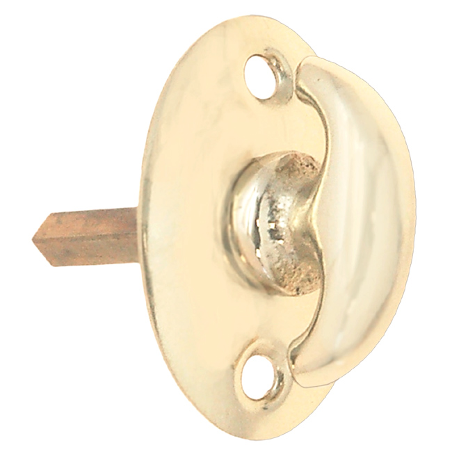 Crescent thumb turn for locking doors on the inside. Stamped brass raised oval plate. Larger size. In five finishes. Old style thumb turns for mortise locks, night locks, catches etc.