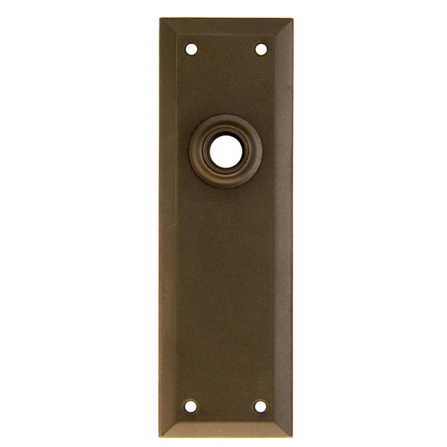 8864-OB Plain wrought brass trim plate (escutcheon) for doors Finish/Color: Oil rubbed bronzeMaterial: Solid BrassDimensions: 2-1/4" X 7"Finish Options: BN | OB | PB | PN | PLTimeline: Late 19th Century, Early 20th Century SKU: 8864-OB-494 Category: Door Plates Tag: Oil rubbed Bronze Description Description Versatile door trim (escutcheon) plate. Wrought brass. In 5 Finishes: PB, PL, PN, BN and OB. 7″ high , 2-1/4″ wide