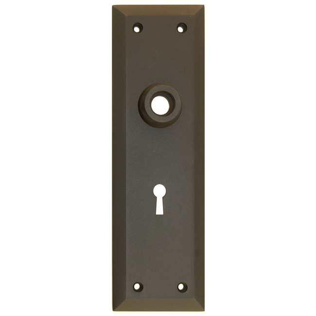 8865-OB Plain forged brass trim plate (escutcheon) with keyhole for doors Finish/Color: Oil rubbed BronzeMaterial: Solid BrassDimensions: 2-1/2" X 8" platesFinish Options: BN | OB | PB | PN | PLTimeline: Late 19th Century, Early 20th Century SKU: 8865-OB-499 Category: Door Plates Tag: Oil rubbed Bronze Description Description Solid brass rectangular door trim plate (escutcheon plate). Forged brass. In 5 Finishes: PB, PL, PN, BN, OB. 2-1/2″ wide , 8″ high 2-1/4″ spacing