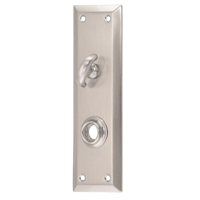 8867-BN Plain wrought brass trim plate (escutcheon) with thumb turn for doors Finish/Color: Brushed NickelMaterial: Solid BrassDimensions: 2-1/4" X 7" platesFinish Options: BN | OB | PB | PN | PLTimeline: Late 19th Century, Early 20th Century SKU: 8867-BN-508 Category: Door Plates Tag: Brushed Nickel Description Description Solid brass rectangular door trim plate with crescent thumb turn. For thumb turn and doorknob. Wrought brass. In 5 Finishes: PB, PL, PN, BN, OB. 2-1/4″ wide , 7″ high 2-1/4″ spacing Thumb turn spindle 3/16″ square