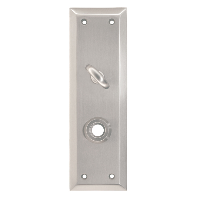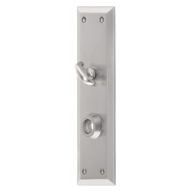 8868-BN Plain forged brass trim plate (escutcheon) with thumb turn for doors Finish/Color: Brushed NickelMaterial: Solid BrassDimensions: 2-1/2" X 8" platesFinish Options: BN | OB | PB | PN | PLTimeline: Late 19th Century, Early 20th Century SKU: 8868-BN-513 Category: Door Plates Tag: Brushed Nickel Description Description Solid brass rectangular door trim plate with crescent thumb turn. For thumb turn and doorknob. Forged brass. In 5 Finishes: PB, PL, PN, BN, OB. 2-1/2″ wide , 8″ high 2-1/4″ spacing Thumb turn spindle 3/16″ square