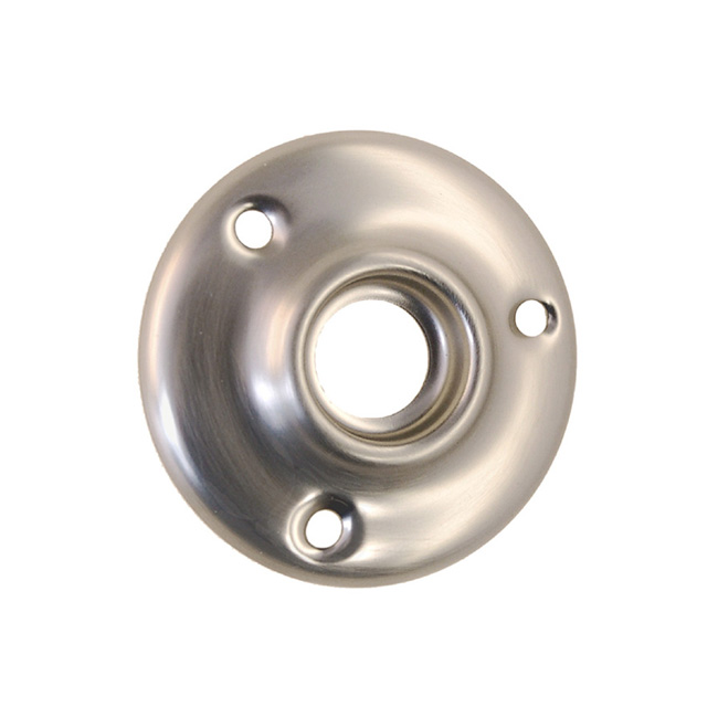8870-BN Traditional stamped brass doorknob rose with 3 holes Finish/Color: Brushed NickelMaterial: Solid BrassDimensions: 2" diam.Finish Options: BN | OB | PB | PN | PLTimeline: Late 19th Century, Early 20th CenturyFeatures: Old style design with 3 holes for screws SKU: 8870-BN-548 Category: Door Roses Tag: Brushed Nickel Description Description Small doorknob rose. Stamped brass. In 5 Finishes: PB, PL, PN, OB, BN. Traditional design with 3 holes for screws. 2″ diameter