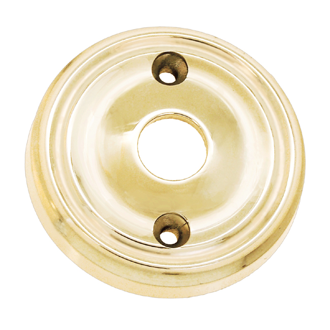 Doorknob rose. Forged brass. In 5 Finishes: PB, PL, PN, OB, BN. High quality solid brass door roses are available for passage or privacy functions. This one is for a passage function and has the holes for the screws. For its complementary piece with shanks, see #8873-D.