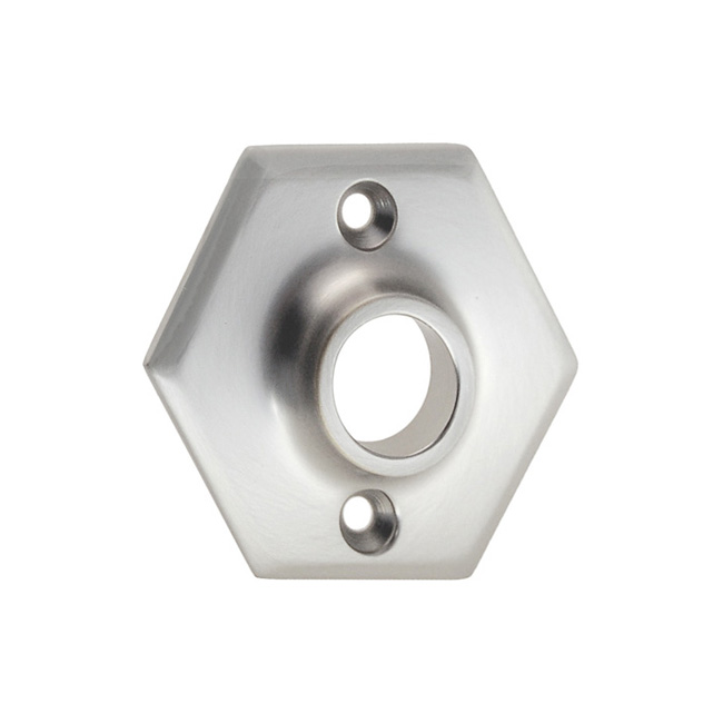 8876-BN Hexagonal forged brass doorknob rose Finish/Color: Brushed NickelMaterial: Solid BrassDimensions: 2-1/2" diam.Finish Options: BN | OB | PB | PN | PLTimeline: Mission, Arts & Crafts SKU: 8876-BN-598 Category: Door Roses Tag: Brushed Nickel Description Description Mission or Arts & Crafts doorknob rose. Hexagonal. Forged brass. In 5 Finishes: PB, PL, PN, OB, BN. Early 20th century style. 2-1/2″ diam. , 1-1/2″ center to center