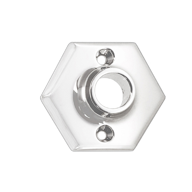 8876-PN Hexagonal forged brass doorknob rose Finish/Color: Polished NickelMaterial: Solid BrassDimensions: 2-1/2" diam.Finish Options: OB | BN | PB | PN | PLTimeline: Mission, Arts & Crafts SKU: 8876-PN-602 Category: Door Roses Tag: Polished Nickel Description Description Mission or Arts & Crafts doorknob rose. Hexagonal. Forged brass. In 5 Finishes: PB, PL, PN, OB, BN. Early 20th century style. 2-1/2″ diam. , 1-1/2″ center to center
