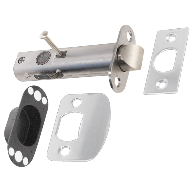 High quality, heavy duty tubular spring latch for doors. For both Right and Left hand doors. Privacy function – includes face plate, full lip strike plate, privacy pin and alignment piece.
