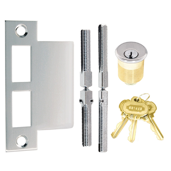 8916-BN Thick door kit Finish/Color: Brushed NickelMaterial: Brass / steelDimensions: For 2-1/4" thick doors (± 1/8")Finish Options: OB | BN | PB | PN SKU: 8916-BN Categories: Door Locks and Latches, Locks and Keys Description Description Kits to adapt mortise lock sets for thicker doors. Kit includes #8878 strike plate, 1-3/8″ long keyway cylinder, and two spindles of 4″ and 4-1/2″ length.