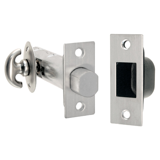 Tubular deadbolt with thumb turn. Set includes tubular deadbolt, face plate, strike plate, dust box, and crescent thumb turn. For both right- and left-hand doors.