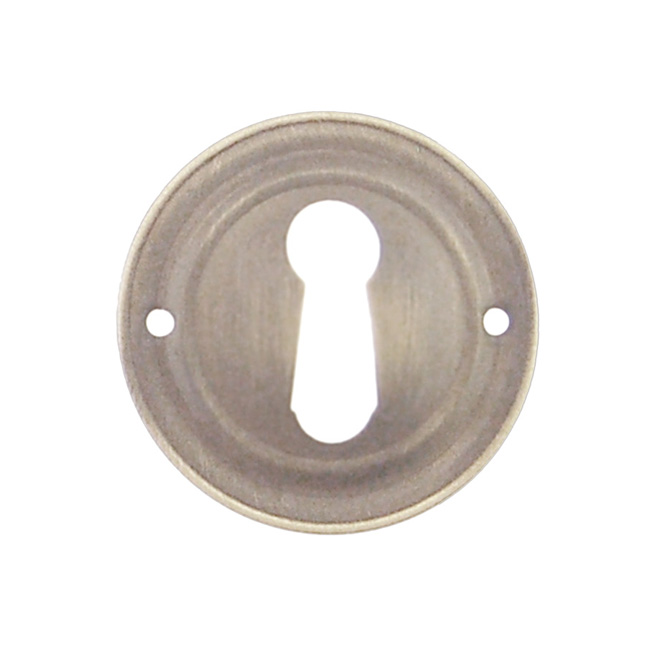 1218-AB Stamped Colonial Revival round keyhole Finish/Color: Antique BrassMaterial: Solid BrassDimensions: 1-3/8" diam.Timeline: Colonial Revival, Federal SKU: 1218-AB Categories: Heppelwhite Sheraton Duncan Phyfe, Keyholes Tag: Antique Brass Description Description Drawer keyhole cover. Stamped brass. Antique brass. Round. 1-3/8″ diam.