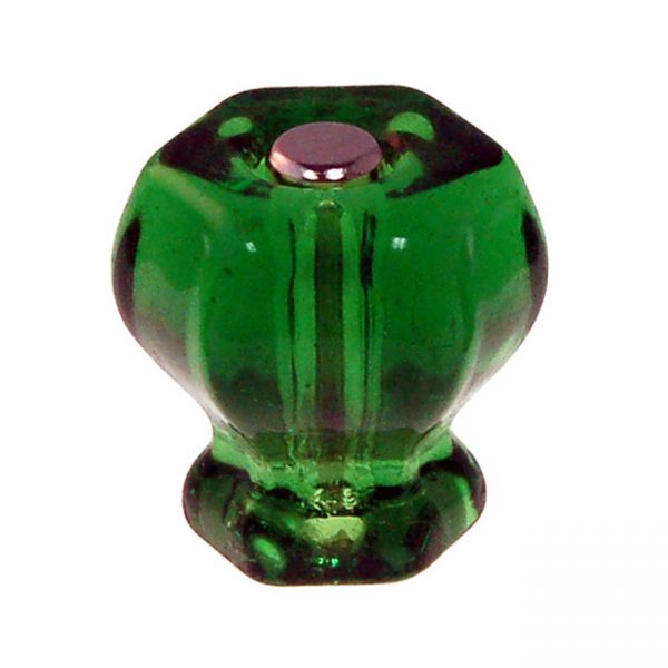 Hexagonal glass knob. The bolt is inserted from the front through the head of the knob. A perennial favorite since the late 19th century on furniture of all kinds and in the kitchen, bathroom and every other where in the home. We offer 3 sizes of knobs (sm., medium, large) and their corresponding handle. Available in 14 colors. Comes with a 2-1/2″ long smooth-headed nickel-plated bolt and nut, just as in the old days. This is the Medium knob.