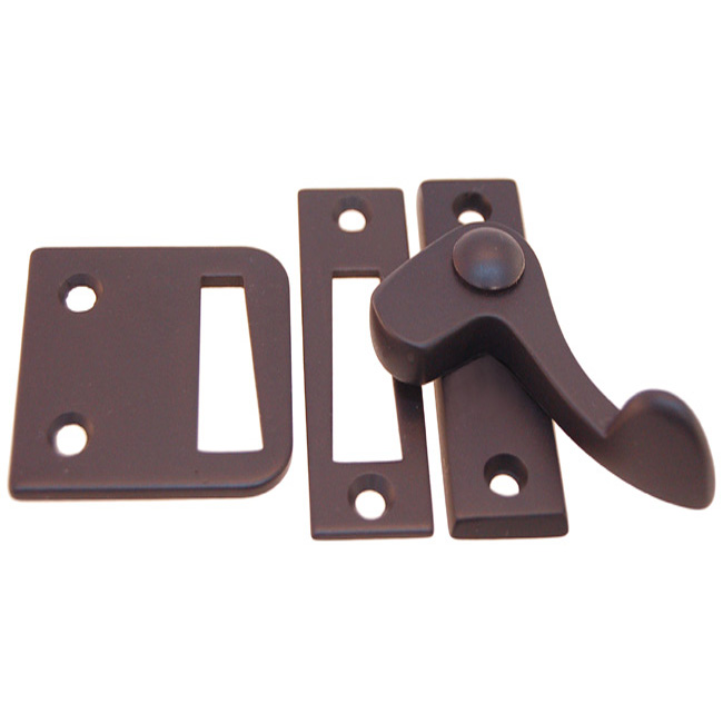 8713-OB Casement window or storm screen latch with lever handle and 2 strikes – R.H. Finish/Color: Oil Rubbed BronzeMaterial: Solid BrassDimensions: Base: 3/4" X 2-1/2"Finish Options: BN | PB | PN | OBTimeline: Late 19th, Early 20th Century SKU: 8713-OB-88 Categories: Casement Window, Window Hardware, Window Hardware Description Description Casement window latch or storm sash/screen holder with lever handle. Right hand. Comes with 2 strikes: rim and mortise. Solid brass. In 4 finishes. Latch base: 3/4″ X 2-1/2″
