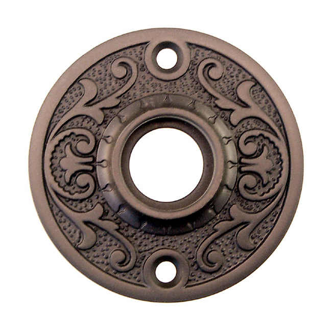 8743-OB Doorknob rose Finish/Color: Oil Rubbed BronzeMaterial: Solid brassDimensions: 2-3/16" diameterFinish Options: BN | PB | PN | OB | PLTimeline: Late 19th century onward SKU: 8743-OB-543 Categories: Door Roses, Door Roses Description Description Doorknob rose. Forged brass. With floral pattern. Comes in 5 finishes. 2-3/16″ diameter , 3/4″ hub dia. , 1-11/16″ center to center
