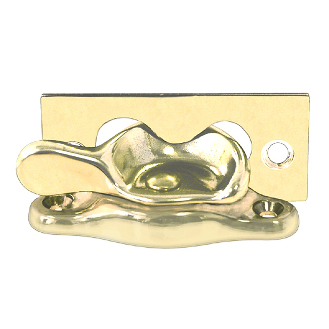 “Crescent” sash lock for sash or hung windows. Complete unit, includes latch and strike. Solid brass. In 6 finishes. There is also a larger version (#8710).