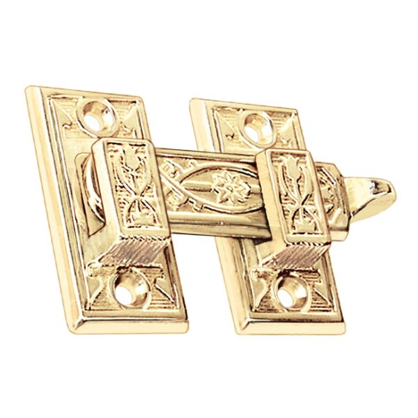 8815-PL Ornate shutter bar – reversible for RH and LH Finish/Color: Lacquered PBMaterial: Solid BrassDimensions: 2-1/2" long barFinish Options: OB | PB | PL | PNTimeline: Late 19th Century, Early 20th Century SKU: 8815-PL Category: Window Hardware Tag: Lacquered PB Description Description Ornate shutter bar. Reversible shutter bar, for both right and left hands. Solid brass. In 4 finishes. With lovely design on its surface. Bases: 1″ X 1-7/8″ , Bar 2-1/2″ long