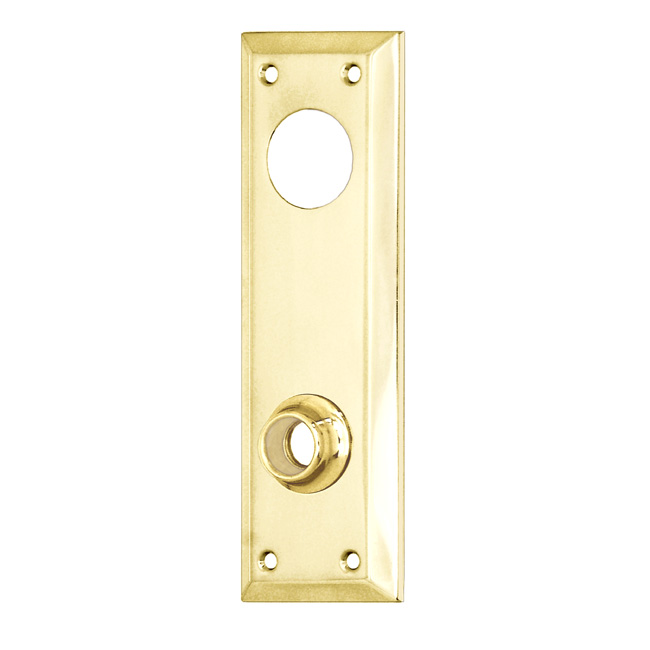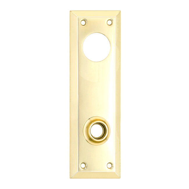 Solid brass rectangular door trim plate with hole for cylinder keyway. For cylinder keyway and doorknob. Wrought brass. In 5 Finishes: PB, PL, PN, BN, OB. Installed on the outside of the door.