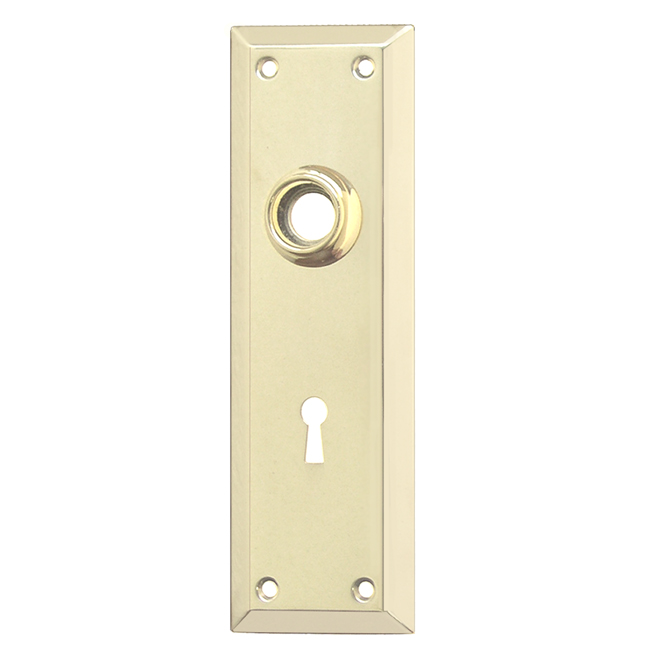 8866-PB Plain wrought brass trim plate (escutcheon) with keyhole for doors Finish/Color: Polished BrassMaterial: Solid BrassDimensions: 2-1/4" X 7" platesFinish Options: BN | OB | PB | PN | PLTimeline: Late 19th Century, Early 20th Century SKU: 8866-PB-505 Category: Door Plates Tag: Polished Brass Description Description Solid brass rectangular door trim plate (escutcheon plate). Wrought brass. In 5 Finishes: PB, PL, PN, BN, OB. 2-1/4″ wide , 7″ high 2-1/4″ spacing