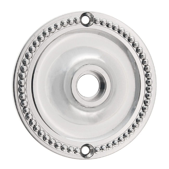 8875-B-PN Very large forged brass beaded doorknob rose – passage function Finish/Color: Polished NickelMaterial: Solid BrassDimensions: 3-1/4" diam. Finish Options: BN | OB | PB | PN | PLFeatures: Will fit on pre-drilled doors SKU: 8875-B-PN-597 Category: Door Roses Tag: Polished Nickel Description Description Extra large passage doorknob rose with rope design (beaded). Forged brass. In 5 Finishes: PB, PL, PN, OB, BN. Will fit over the standard 2-1/8″ predrilled hole in door. Passage function. 3-1/4″ diam. , 2-15/16″ center to center