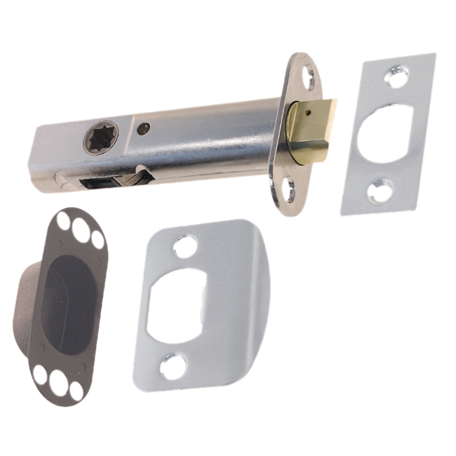 High quality, heavy duty tubular spring latch for doors. For both Right and Left hand doors. Passage function – includes face plate, full lip strike plate and alignment piece.