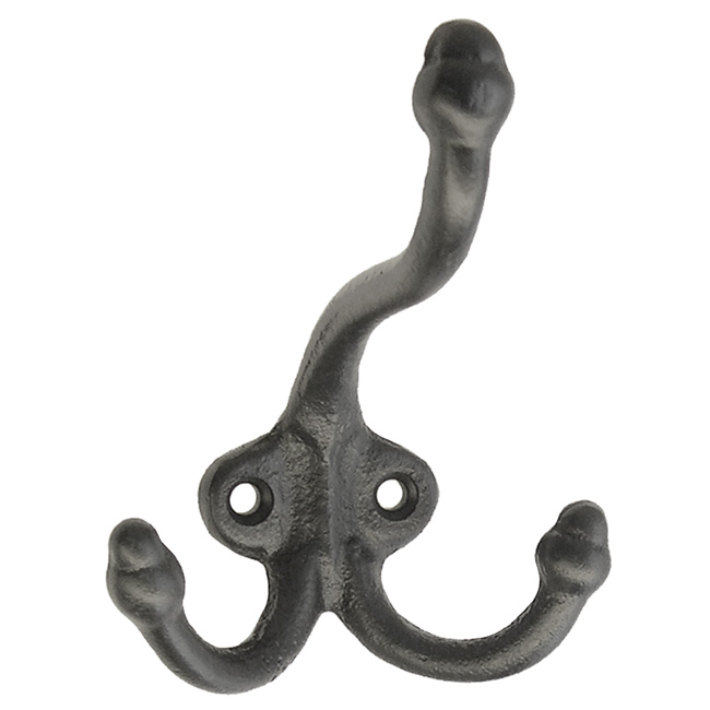 9903 Iron hook Finish/Color: Black Material: Cast IronFeatures: 3-pronged utility cast iron hook, black SKU: 9903 Categories: Hooks, Hooks, Hooks, Iron Description Description Cast Iron three-pronged utility hook. 3-1/2″ tall, 2-5/8″ projection Base: 1-3/8″ x 1″